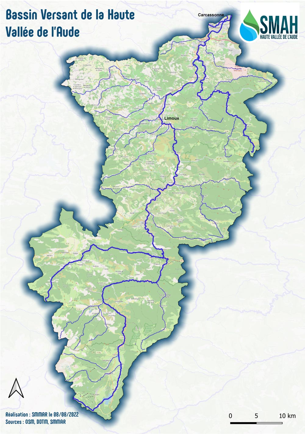 Carte du bassin versant de la Haute Vallée de l’Aude